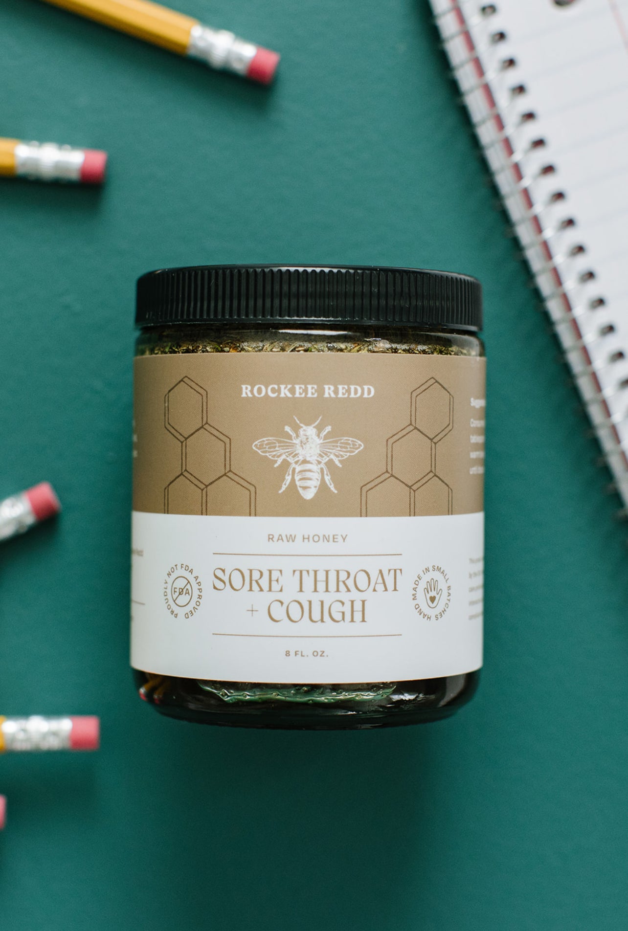 - Sore Throat + Cough Honey — Comfort at the first sign of illness. A clean, herbal alternative to synthetic cough syrups that soothes the throat and calms coughs.