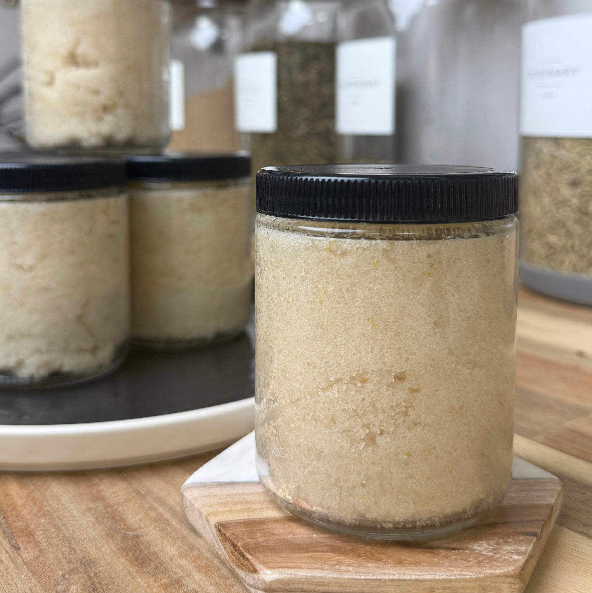 This comes in a simple 8oz glass jar with no label, because this is an experiment. Please be mindful using it in the shower so it does not break.