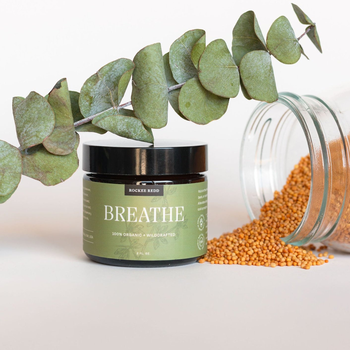 Say Hello to Breathe - an organic, handmade salve crafted to soothe your senses and melt away congestion. With each application, this botanical blend gently opens your airways, bringing instant relief. As you rub it into your chest, the calming aromas rise like a soft, herbal breeze, clearing your head and easing allergy symptoms. The all-natural ingredients nourish your skin while providing a cooling, comforting touch. Whether you're tackling a cold or simply want to breathe a little easier, *Breathe* transforms self-care into a peaceful, refreshing ritual.